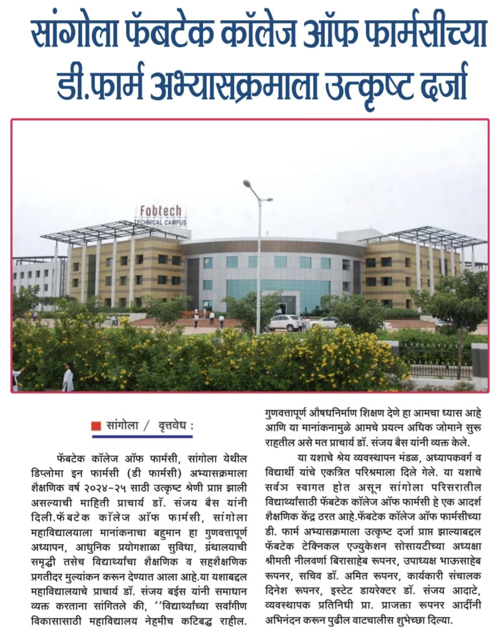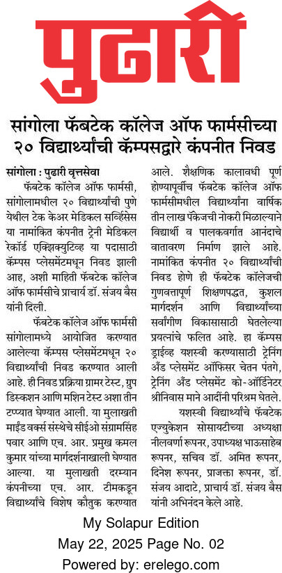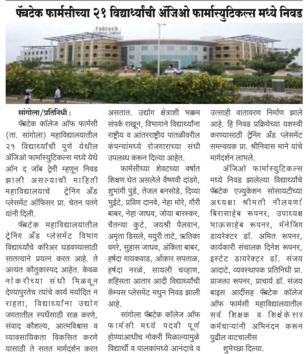 Fabtech College Of Pharmacy, Sangola
